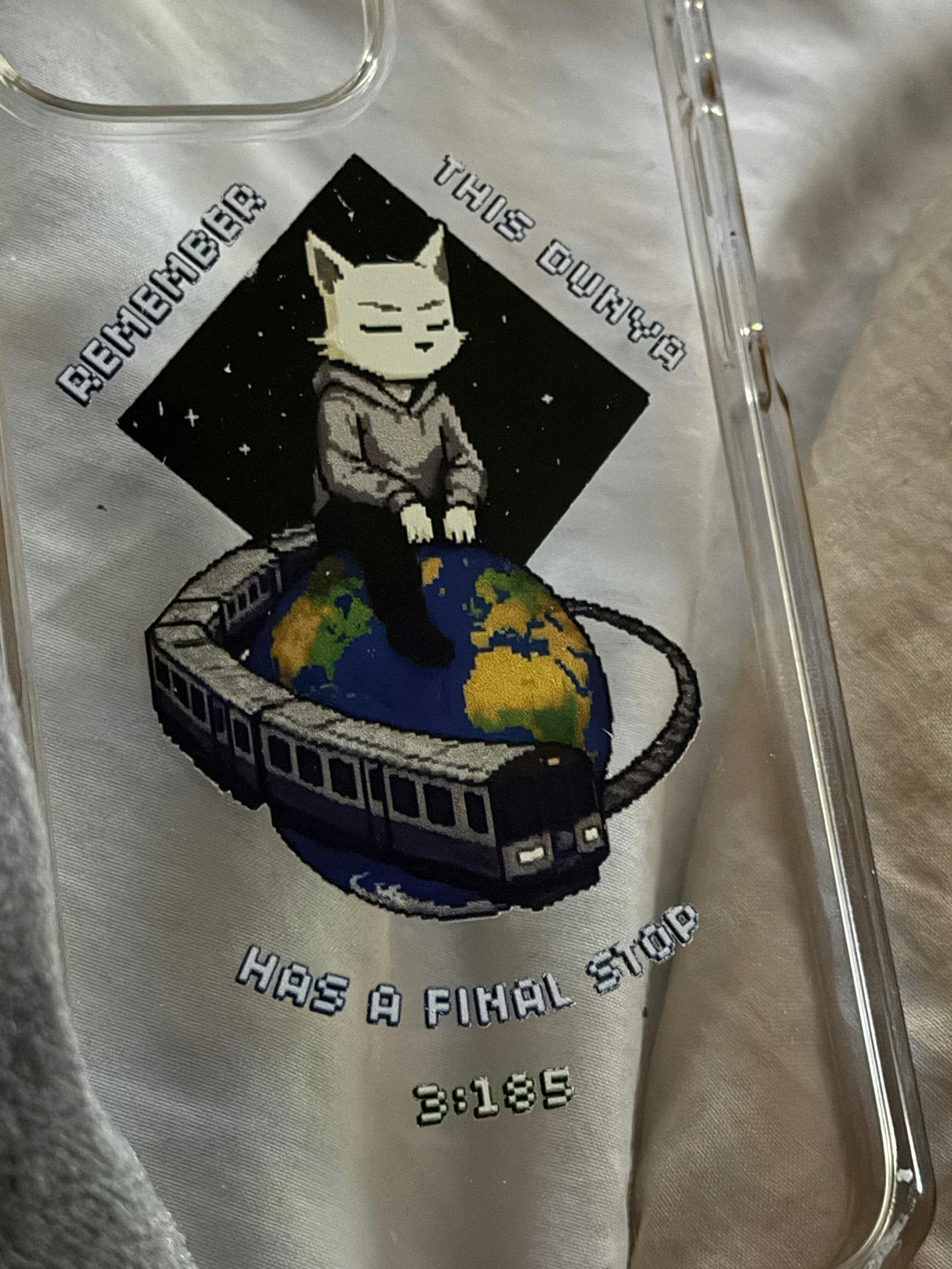 We wanted this case to offer a moment of pause a gentle reminder from Surah Al-Imran 3:185 that every soul shall taste death, and this world, like a train, is only passing through.